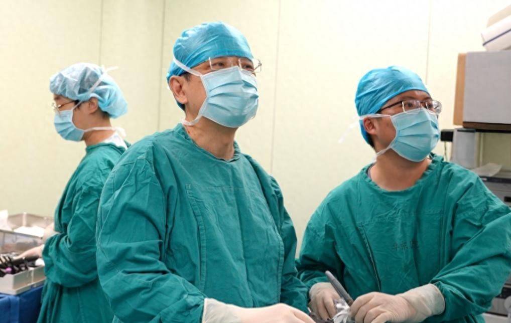 顾岩(中)在为患者进行手术。吴麒敏摄