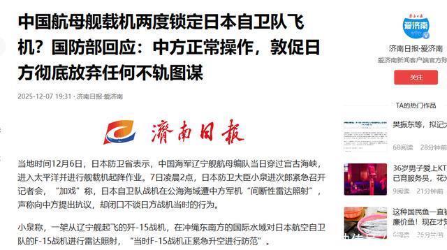 ——【·绪论·】—— 中日2天内5次交锋,高市早苗气派签订,中方平直用10个字,说出了日本的下场。那么,日本炒作军机遭中方锁定的办法是什么?中方的反击又是何如伸开的? ——【·日本防长的“受害者”戏码·】—— 12月7日的凌晨期间,当西太平洋的波澜还在冲刷着冲绳海域的礁石,日本能干省的勤勉记者会照旧突破了夜深的宁静。 能干大臣小泉进次郎心情凝重地出现时镜头前,用仓猝的语调抛出了一则所谓的“重磅音尘”,宣称中国辽宁舰搭载的歼-15...