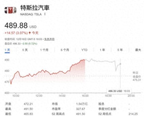 特斯拉股价周二上升3.1%,收于489.88好意思元,创下历史收盘新高。特斯拉市值也借此稀薄博通,成为好意思国市值第七大公司。年头于今,特斯拉股价已累计上升近30%。