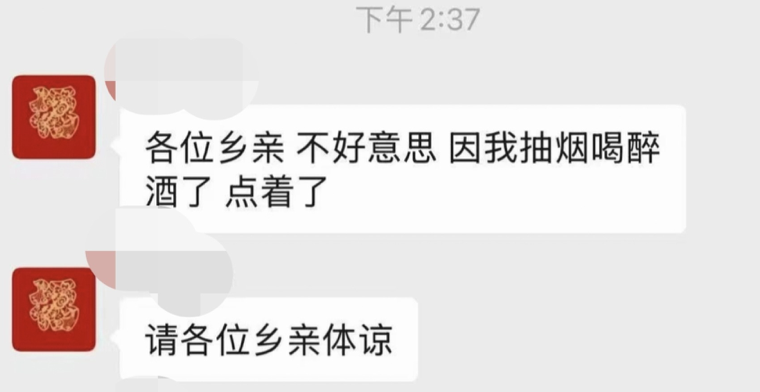 12月18日,广东珠海,网传一小区有东谈主放火。网传玺悦湾(南区)业主群聊天记载,别称业主一刹在业主群发言,重心火烧屋子,请1单位的业主全部离开,之后还发图称依然烧起来了。另有聊天记载流露,这名业主还在群里确认注解,“因我吸烟喝醉酒点着了。”另有网传视频,楼栋一房间内冒出黑烟。