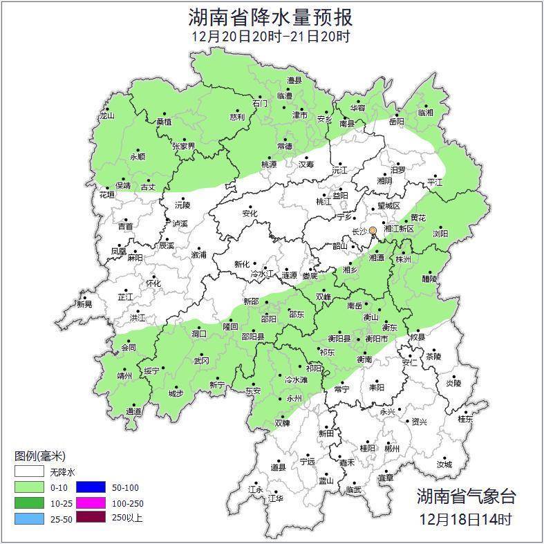 12月18日14时湖南省气温实况图湖南省悦目台预测今晚(12月18日)至19日日间全省以多云间好天为主;19日晚至20日有次降温降雨风力加大天气历程,历程降温幅度可达10℃,风力加大至4~5级,局地阵风7~8级,其中湘西、湘北大部分地区有小雨。改日三天全省预告18日晚上至19日日间,多云间好天;南风2~3级;最低气温湘西北5~7℃,其他地区8~11℃;最高气温20~24℃。19日晚上至20日日间,多云转阴天,其中湘西、湘北大部分地区有小雨;南风2~3级转北风4~5级,局地阵风7~8级;最低气温9~12℃;最高气温湘中以南20~24℃,其他地区15~18℃。